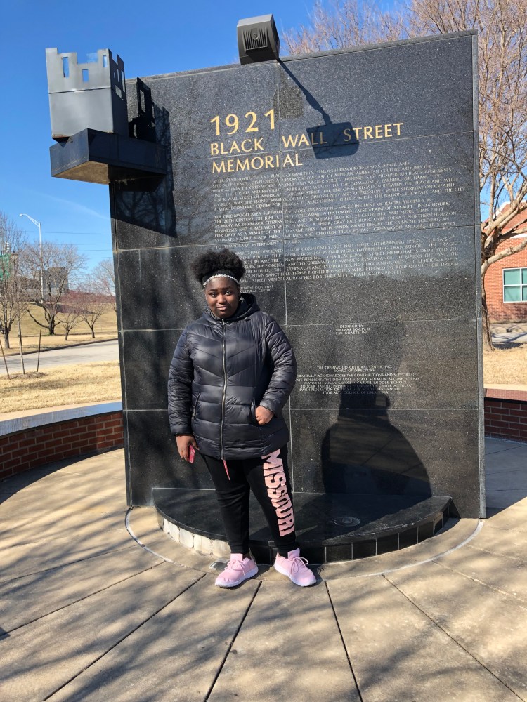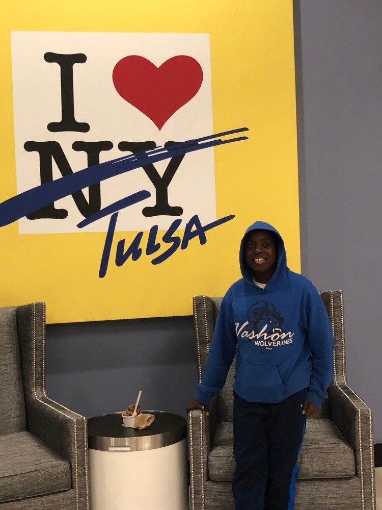 So Friday we got a jump start on our excellent adventure. We drive from St. Louis to Tulsa, OK. We checked into the Hyatt Regency and walked down to an area with some really interesting dinner options. We settled for the Lone Wolf, that was an Asian infused cuisine. Kids had a chicken sandwich and I had a ginger fritter fried rice bowl. We talked about what the kids wanted to see the following day, with Black Wall in the Greenwood neighborhood.