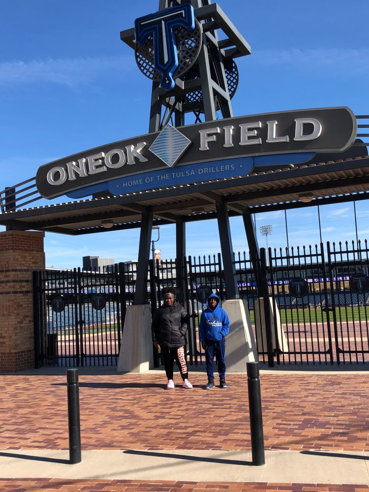 Saturday morning we got off to a late start so in order to be on the road by noon, we narrowed our options down to Oneok Field and Greenwood. We took some quick pictures of the field and my youngest shared what he had read about the field during breakfast.
