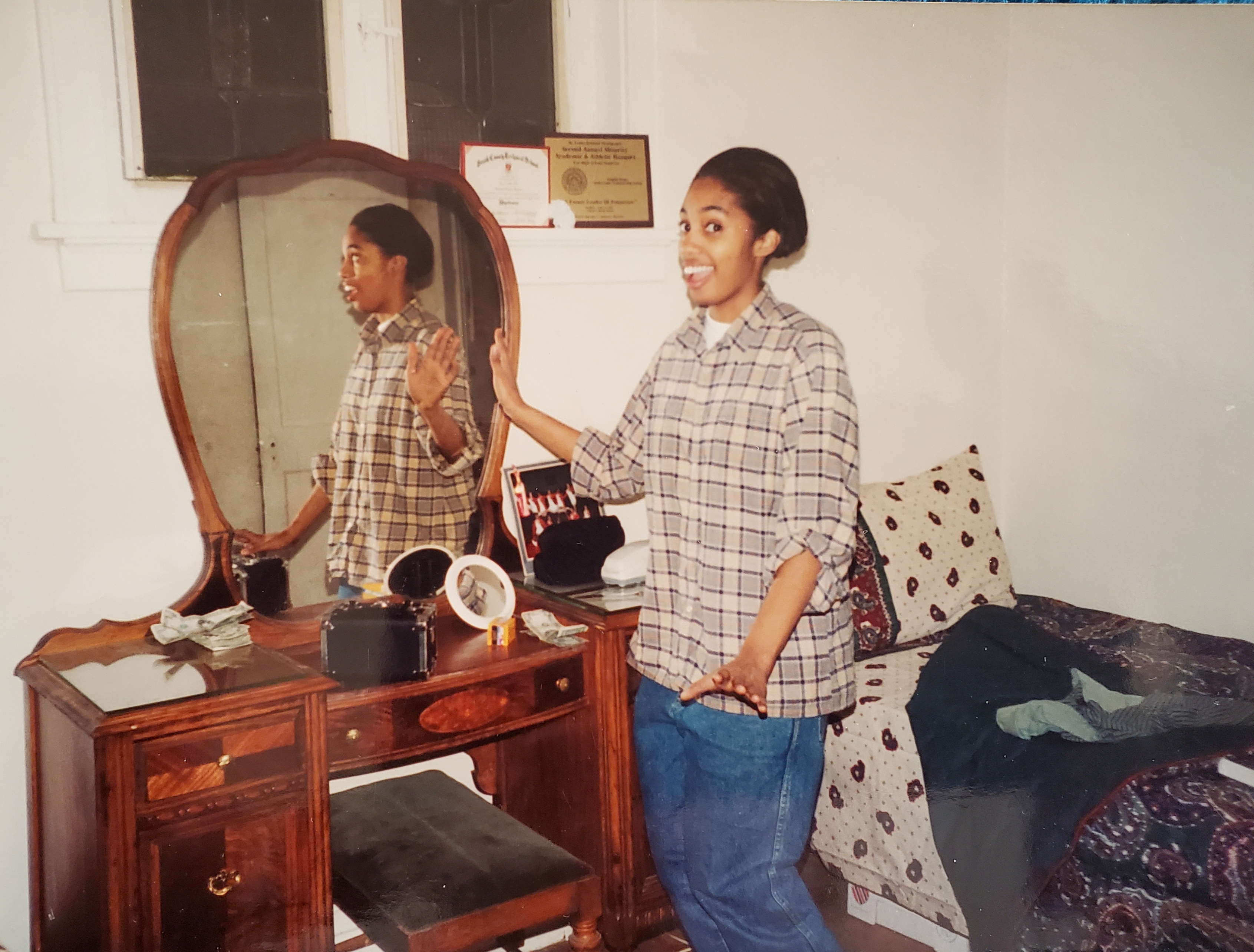 I got a job right away at a thrift store on Natural Bridge. It was only a few miles away and I could walk to and from work. On my way to work, I also applied to other places that I passed because I was glad to have the job but sorting clothes at a thrift store can be a tough gig. I got hired for the night shift at Walgreen’s on Natural Bridge and Lucas and Hunt. So, for a while I worked two jobs and stacked my moneys! I didn’t want to over stay my welcome at my aunts, so I went to stay with my friend Tamika (Mikes niece) and at her parents house. I stayed for a while but it was just until we moved into our apartment.