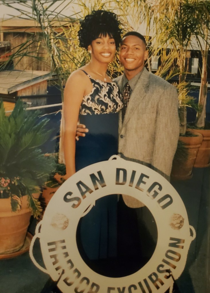 I was convinced that life was good, so much so that when Adrian got orders to the air station in Lemoore California, it didn’t faze me. It was only four and a half hours away. Besides I had my sister and absence makes the heart grow fonder right? My brother was coming to stay for the summer, and Adrian had agreed to go with me to LA to pick him up. Adrian’s cousin also happened to be in town and decided to come with us to LA. This ride would take waaaaay longer than anticipated because Adrian refused to stop and ask for help when we got lost. It got so bad that his cousin and I plotted against him taking the road map (there was no google maps and GPS at that time) and forcing him to stop at a gas station for directions. Adrian got the directions and we were picking up my brother in no time. The bad part was Adrian was MAD! This was my first time making him mad. I didn’t have experience with such things so of course I made jokes and tried to make everyone laugh it off. Everyone did except him. He did not speak for the remainder of the night. He dropped my brother and I off went to spend the last little bit of time with his cousin. For the first time in our relationship I was unsure and a little afraid that I might have ruined things between us. I was so dramatic. He came by the next day and things were fine. The drive didn’t even come up. We all hung out like a big family going to Six Flags, Universal Studio’s, the beach and whatever else my brother wanted to do.