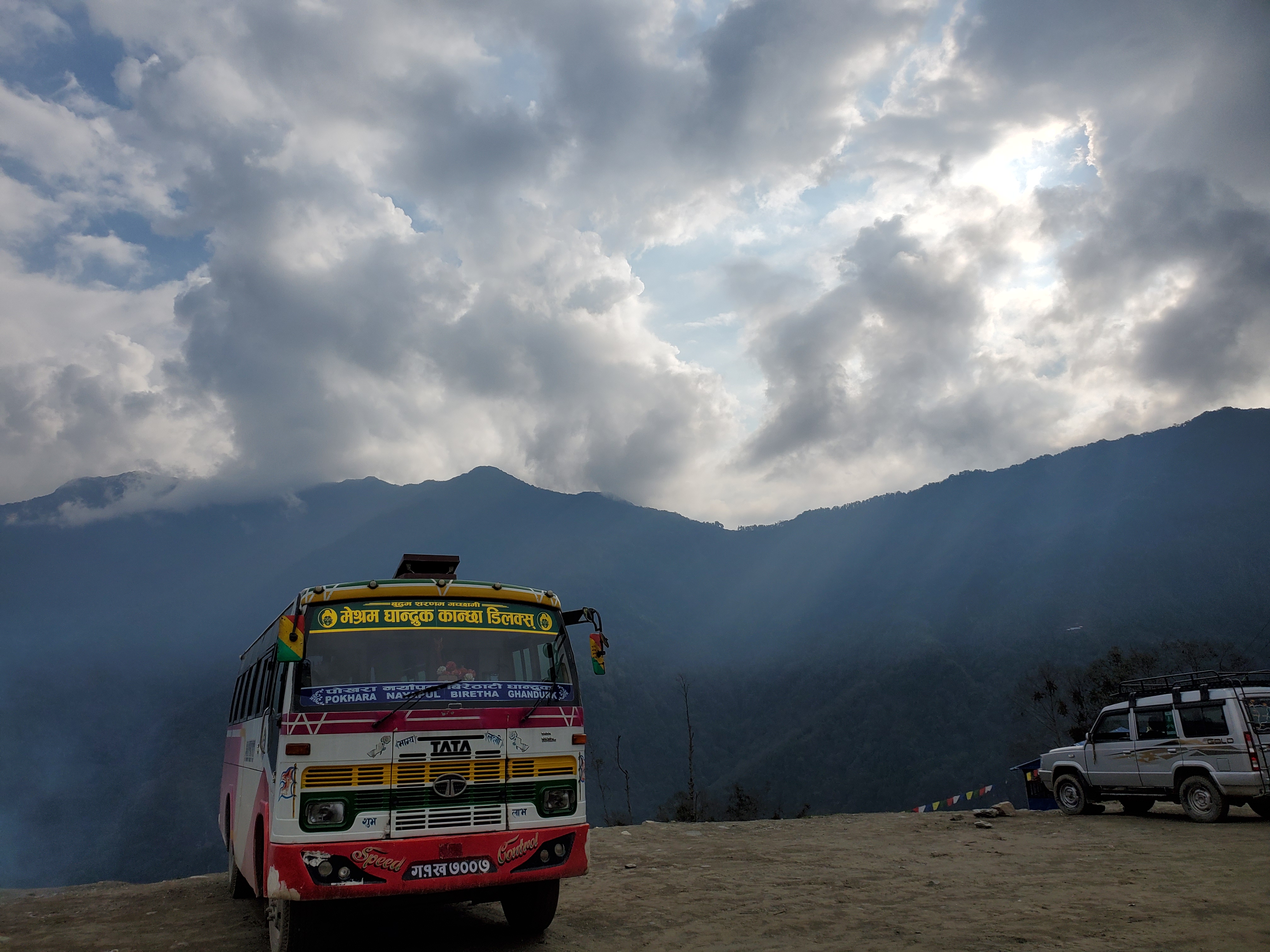 That night I got to take a “hot” (it was only slightly not cold) shower and I slept like a baby! I was up bright and early; it was a lovely morning but at breakfast there was rumblings about airport closings due to the Corona virus. I attempted to use the wifi to find out more info before we headed out, but the signal was no good. Was I worried? Honestly at that moment no, I figured that I would either be able to leave, or I wouldn’t at this point there was nothing I could do so there was no point in worrying about it. So, I gathered my things and we started our short journey to the bus station. It took us no time to arrive, I threw my bags on the bus and sat outside chatting with Rajan about the trip, the virus, life, family and just about everything during the thirty minutes we had to wait for the bus to depart. Rajan was a very nice guy. He was a family man that owned a home with a farm in a village a few of hours outside of Kathmandu. During the season he usually rented a room in Kathmandu and worked the farm during the off season. This season he only had one client, me. Therefore, when my tour was over, he would be heading back to his village to be with his family on the farm. He was happy to have the time with his family but worried about how this seasons low turnout would impact his family economically. The virus was not only taking lives by invading bodies but also diminishing the lively hood of millions in towns and villages all over the world and Nepal. The same villages in Nepal that had just finished rebuilding and recovering from the earthquakes just a few years before. In these places where there is already little to be had this pandemic could become even more deadly sending economic aftershocks tearing thorough small towns one by one.